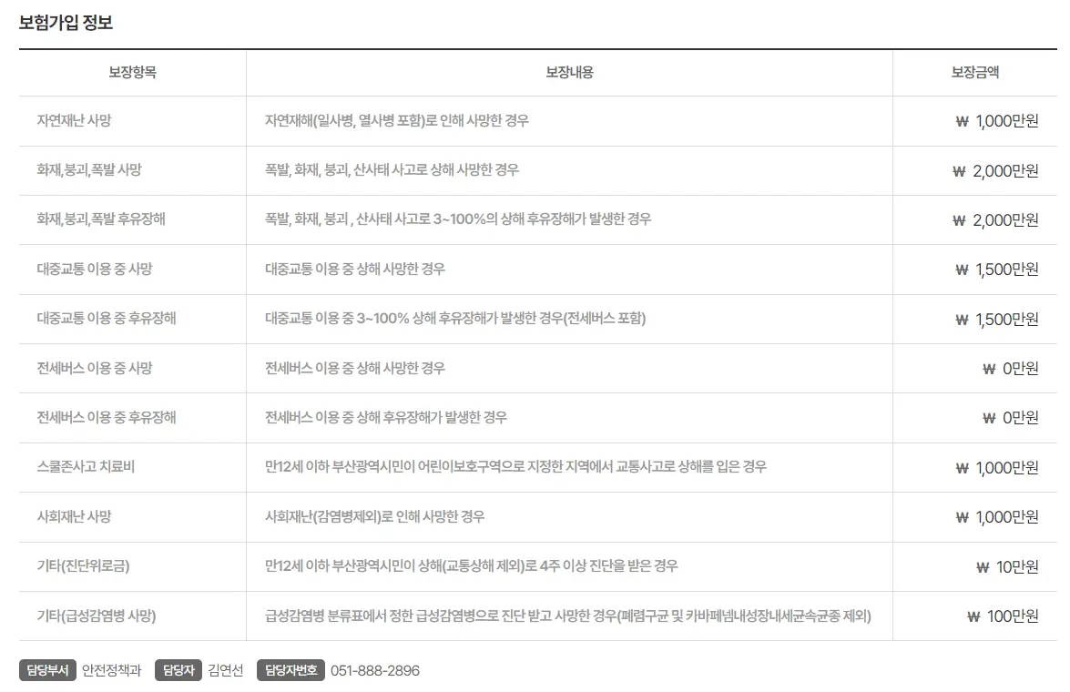 부산시 시민안전보험 보장범위