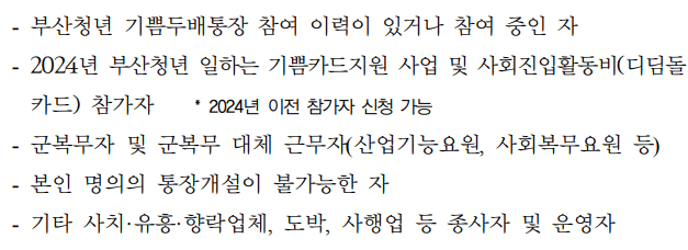 부산청년 기쁨두배통장 참여대상